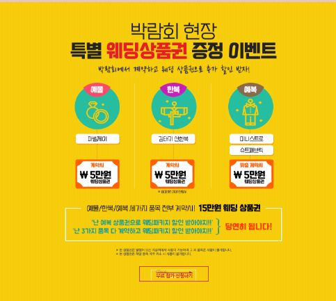다음 폼에 입력하시고 결혼을 앞두신 예비 신랑, 신부님들 많은 혜택을 받으셔서 더 행복한 결혼식을 준비하시기 바랍니다.